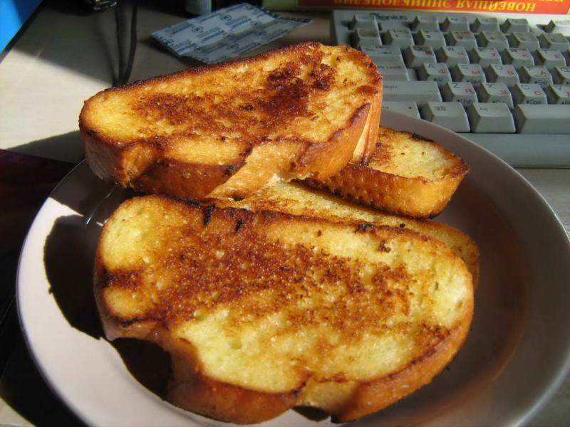 У меня тут значит гренки, сфотканные в начале лета 2009 года. Была летняя сессия, приходилось готовиться начиная с рассвета, потому такое клёвое освещение.