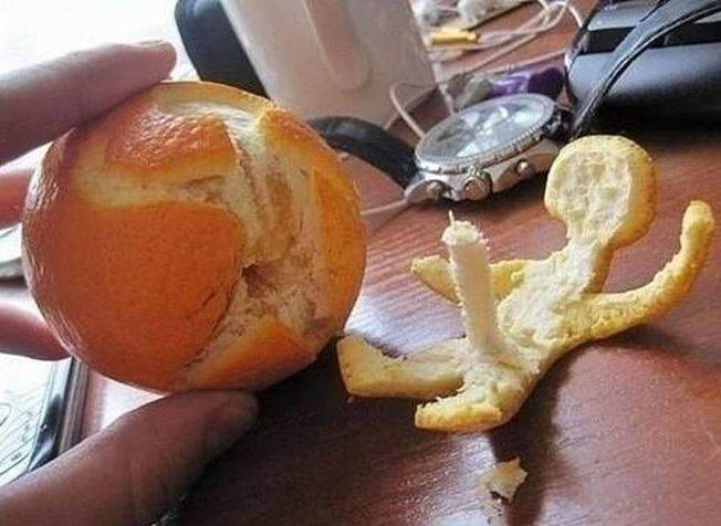 Человечек из апельсиновой корки. Приятель на моих глазах сделал.