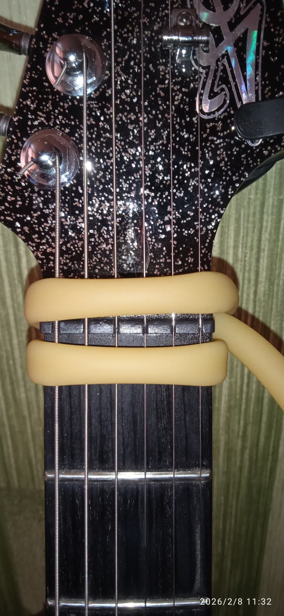 Ни когда таким устройством не пользовался. Мне казалось, что подобные демпферы используются, когда играют с открытыми струнами и нужно, чтобы звук не отличался от прижатой (на каком-нибудь ладу) струны. То, что alexweis придумал должно вызывать нестроевич, как мне кажется.