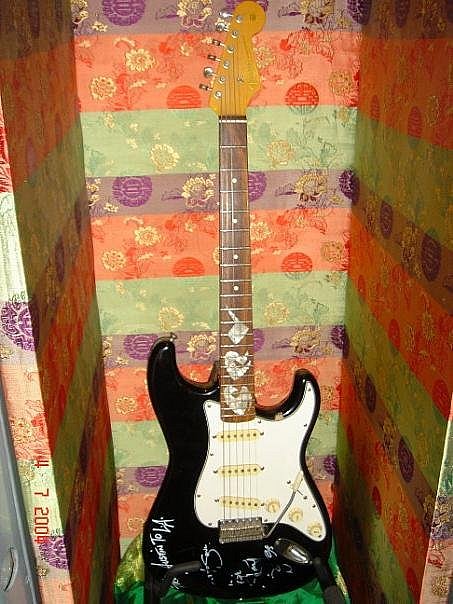 В подвале Лондонского Hard Rock Cafe есть музейчик рок-н-ролла, с скромным названием The Vault.. Там "типа в сейфе" стоит этот страт, на грифе инкрустация SRV, и белым маркером на корпусе написано: From Austin to LA Soul to Soul Stevie Ray Vaughan Табличка с аннотацией гласит: Here is his signed Fender Stratocaster electric guitar acquired from him by Hard Rock in 1986.