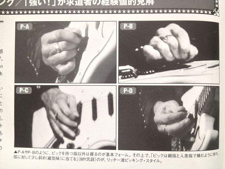 PEPS, при всём уважении к тебе, хват медиатора, это настолько таинственная и личная вещь, что описывать это, а тем более пытаться копировать - дело совершенно невозможное! Хват основан на чувстве каком-то, это осязательно-мозговой процесс, который происходит интуитивно, и в мозги к звезде не залезешь, и его кожей медиатр не почувствуешь. Если с Блекмором сидеть неделями друг напротив друга, и он будет учить и поправлять, ну может что и получится похожее... Только нафиг надо! Я так думаю, что хват формируется сам, в процессе занятий. Садится этот медиатр и всё. Долбишь, долбишь, год, другой, третий, четвёртый, и он, медиатр этот, постепенно усаживается как-то там в пальцах, чувство какое-то появляется. И он ещё там ползает по всякому, поворачивается и скачет. Сам. А теоретически измерять транспортиром угол поворота и посадку в миллиметрах... - по-моему это бессмысленное и ненужное занятие. Сидеть надо просто и заниматься, и усядется этот медиатр когда-то.