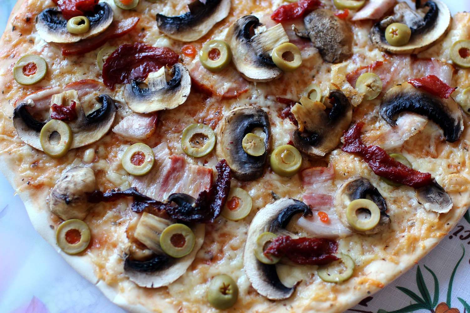 Но последний раз когда заказывали на дом, показалось, что в мясной пицце, при достаточно высокой цене, мяса вообще практически никакого не нашли