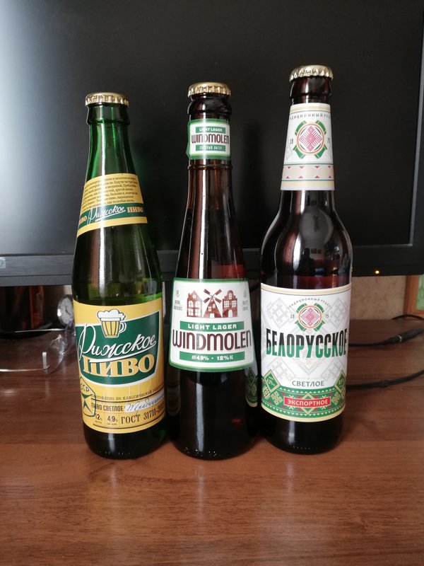 Заехал в КиБ. Обратил внимание на Виндмолен Лайт с зелёной этикеткой. Совсем недавно появился. Завод тоже Трёхсосенский, алк. 4,9 как у Рижского, плотность тоже 12% как у Рижского. Сразу возникло предположение, что оба сорта из одной бочки разливают, что для Трёхсосенского обычная практика. Фильтрованное - это плюс, пастеризованное - это ещё один несомненный плюс.
