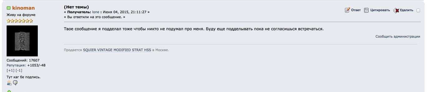 откуда я знаю на что ты мне ответил. Ты мне просто сообщение прислал, а сначала на форум фотожопное выложил, якобы от меня. А потом на него мне сам ответил