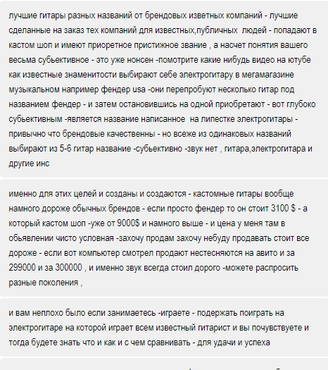на что виктор выдал мне вот такую очередную несвязную простыню, потом сказал, что фендер стоит 3100долл, и прочее.