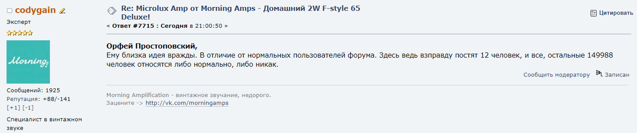 Всем остальным 149988 человекам просто плевать на твою корпорацию-шарагу Morning Amps.