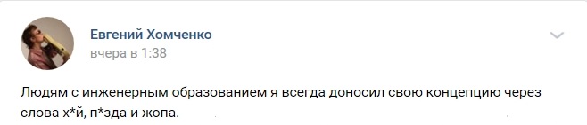 Но Женя , он яркая жертва Системы, которая внушает своим жертвам: -" Если не можешь взять умением и конкретным делом, продави ситуацию, внуши или нае..би. если сможешь. Главное - продай товар за такую цену, чтобы затем можно было потешить своё тщеславие"