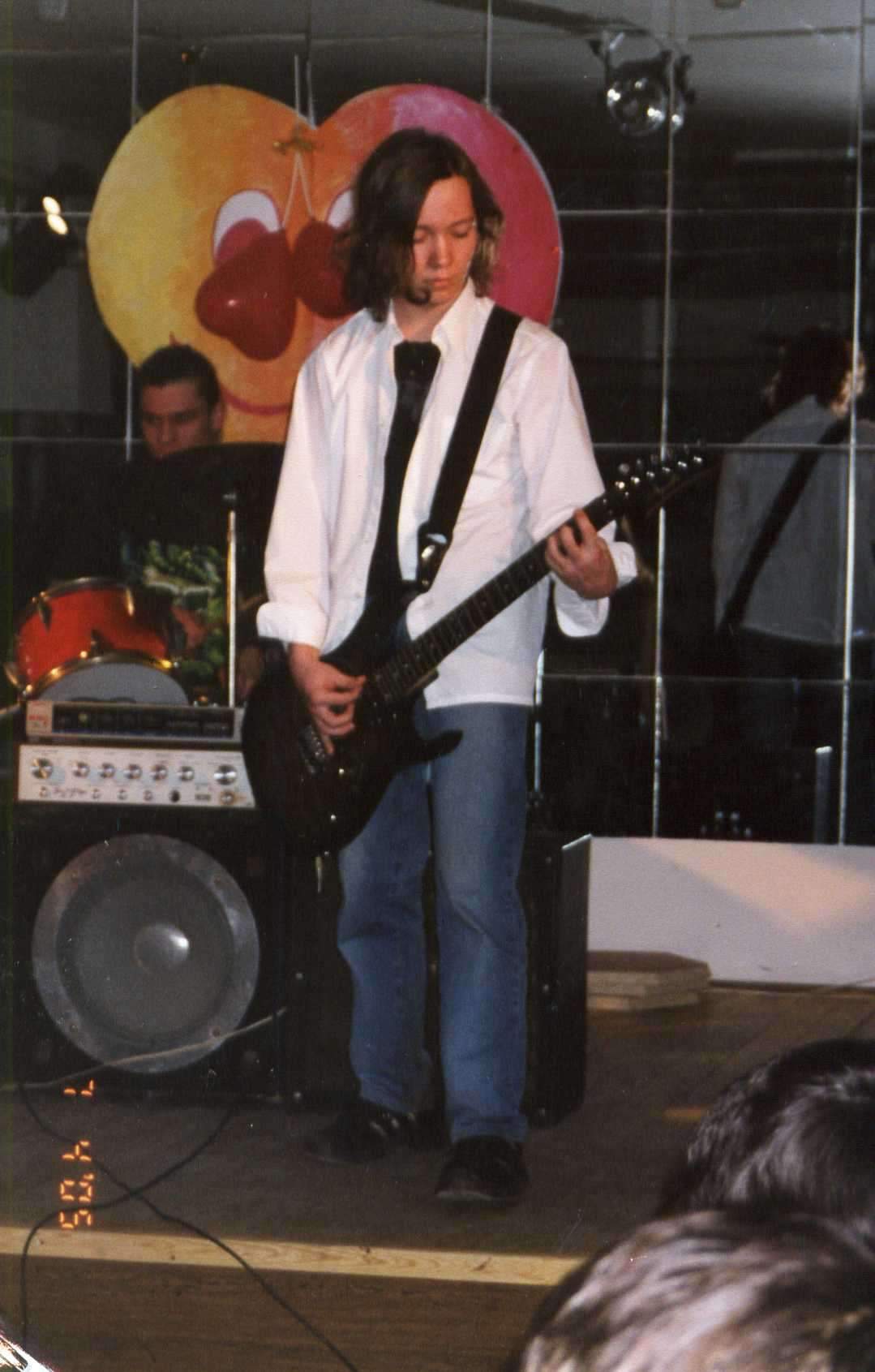 Увидел в фотоальбоме Жэки шикарную фотографию домикролюксовского периода. Патлы до плечей, в руках кажись ибанец, играет что-то типо митола или альтернативы, на заднем плане динамик далеко не 8"