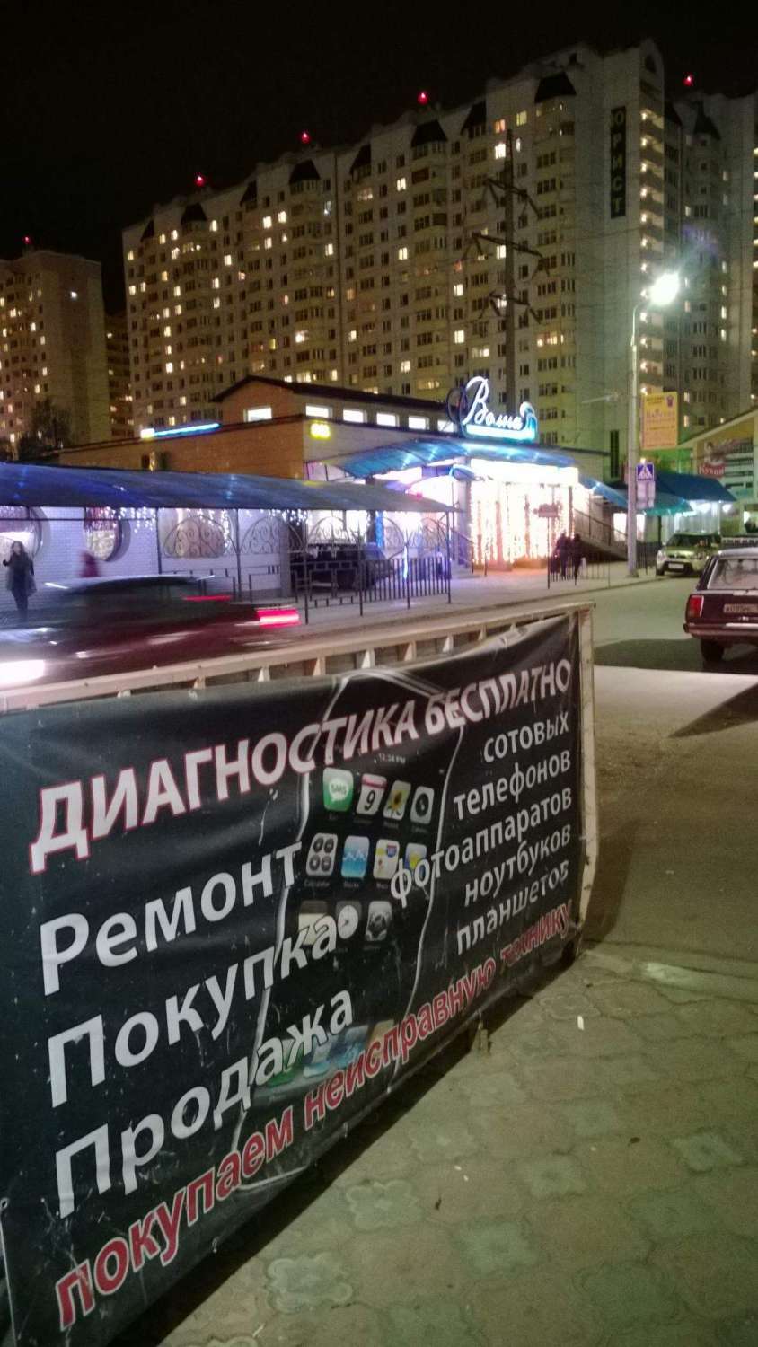 Сзади никаких ярко освещенных магазинов, стоянок и т.п нет. Есть обычный магазин и свет из него исходит не более чем с магазина, которые находятся на первом этаже зданий. Вот, кстати, подтверждение моих слов еще одно фото, где я сфокусировал камеру на магазин напротив, а не на банер.