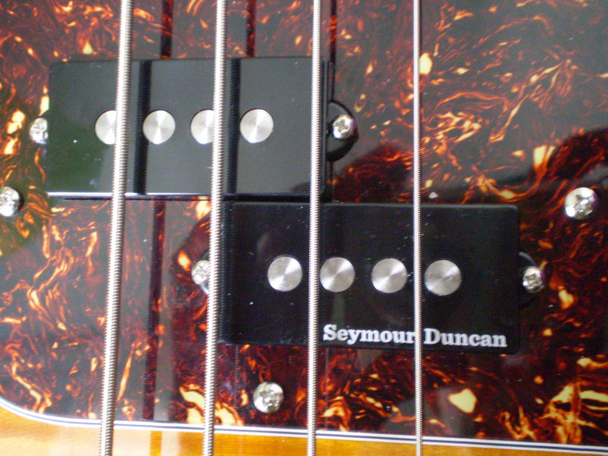 Товарищ Fender, бас чисто америка ,но сборный,самый дешёвый гриф серия американ спешиал,тушка селект очень дорогая,выше только кастом шоп по цене у фендера,сеймура  с повышенном выхлопом, типа как квартер поунд у Блэкмора на страте,ну и все потроха фирма вплоть до проводки,то есть американец собранный под себя