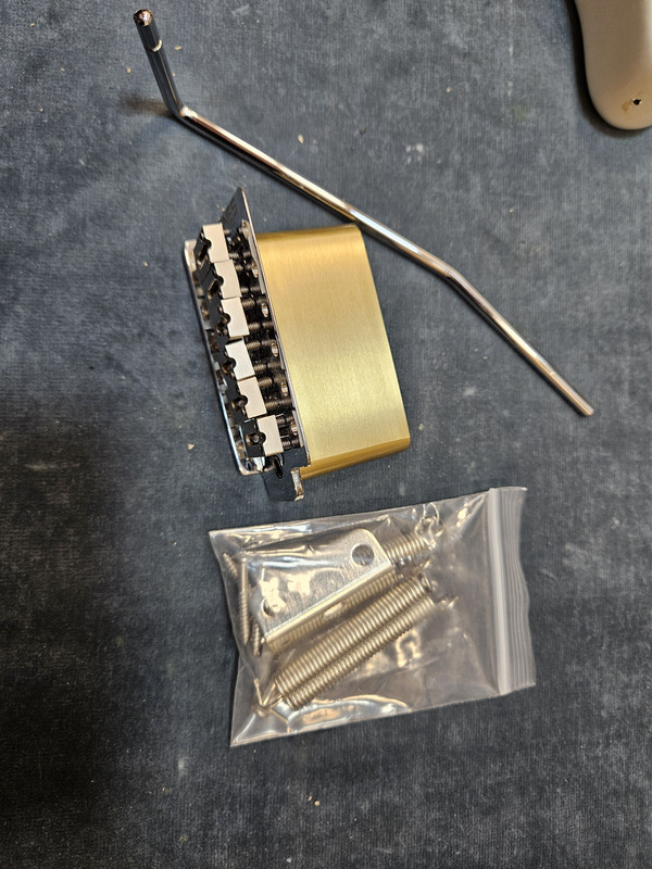 Тремоло с Али, ну так, ничего себе, учитывая латунный блок. Все работает, пружины хорошо балансируют. Я люблю рычагом,
