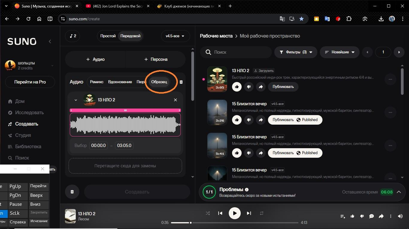 ... и добавил:mancraft, пока не разобрался, залил свой минус, текст, выбрал стиль.... а ета сволотчь придумала сама музыку, а на мою никак не повелась...