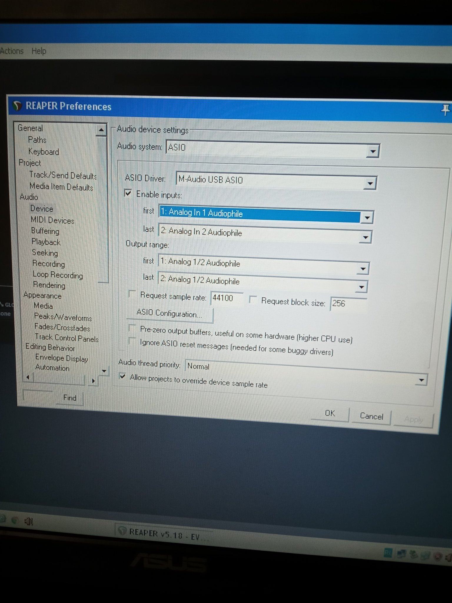 Дальше в твоем секвенсоре  надо выставить ASIO аудиофила, и назначить ее на ВХОД и ВЫХОД