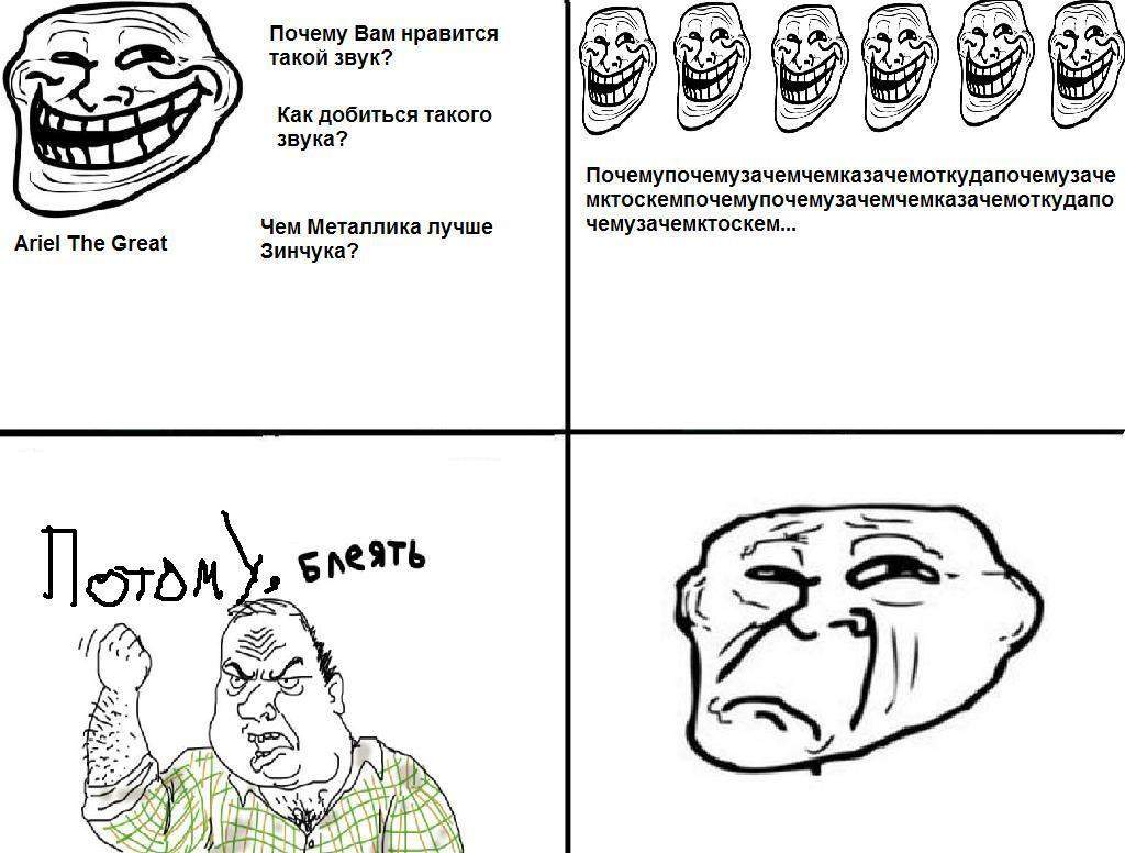 БОльшую часть лажи списывает на отстойное оборудование. Причём деньги у чувака есть, но на вопрос, почему не купит себе что-то получше - отвечает, что будет покупать только американский Джексон и "Маршаловскую стенку", в покупке другого, более скромного оборудования смысла он не видит.