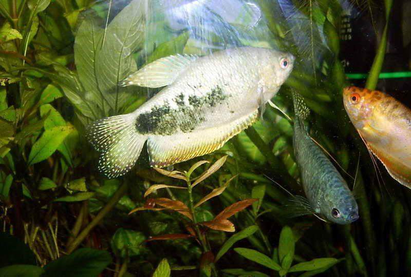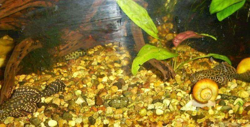А в маленьком аквариуме просто сейчас несколько грязновато - у меня фильтр сломался, скоро новый куплю, надо будет грунт просифонить, туда ещё песка навалю, растений посажу, ещё одну лампы вверну туда, короче круто будет =)