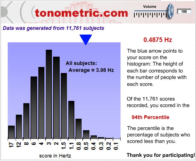 Так, я прошел 2 раза и попробовал 3-ий раз. Очень долго отвечал, ни единой ошибки. Он в конце просто меняет в строке значения 0,046875 и надпись, которая на скрине. Видимо теста нет конца, если не ошибаться, я довольно долго без ошибок отвечал и эти надписи менялись.