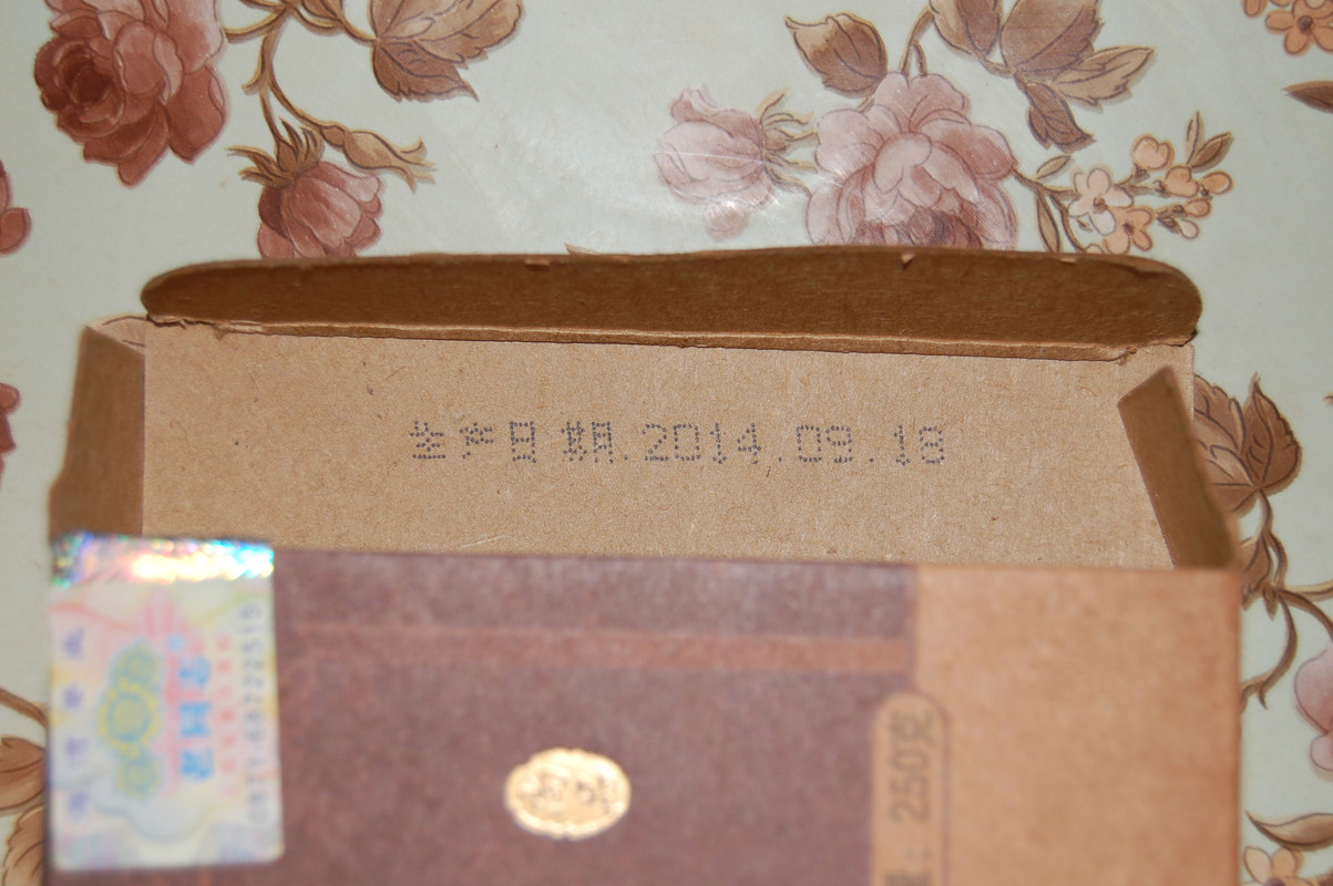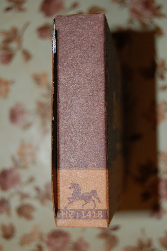 Даже закрытая пачка издавала приятный благородный запах чая, но никак не подвала, прелых листьев или земли, присущих шу пуэрам. На её торце, открывающем коробку, изображена бегущая лошадка и надпись HZ1418 — означающая: 14 - рецепт 2014 года, 1 - сырьё первого класса, 8 — номер фабрики Юннань Эйнинг Хавань.