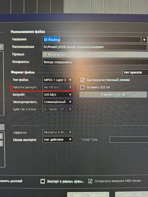 Сними галку - при экспорте в мыпы3, снять галочку высококачественный режим. Будет доступен выбор частот экспорта.