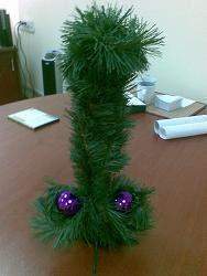 дома уже елко стоит. батя там такую угарную конструкцию сделал. короче он когда в деревню катался, вместо того чтоб елку привезди, привез кучу веток, таких здоровых и мохнатых. короче он взял старую табуретку, профигачил в ней дыру и воткнул туда эти ветки. получилась типа елка)))