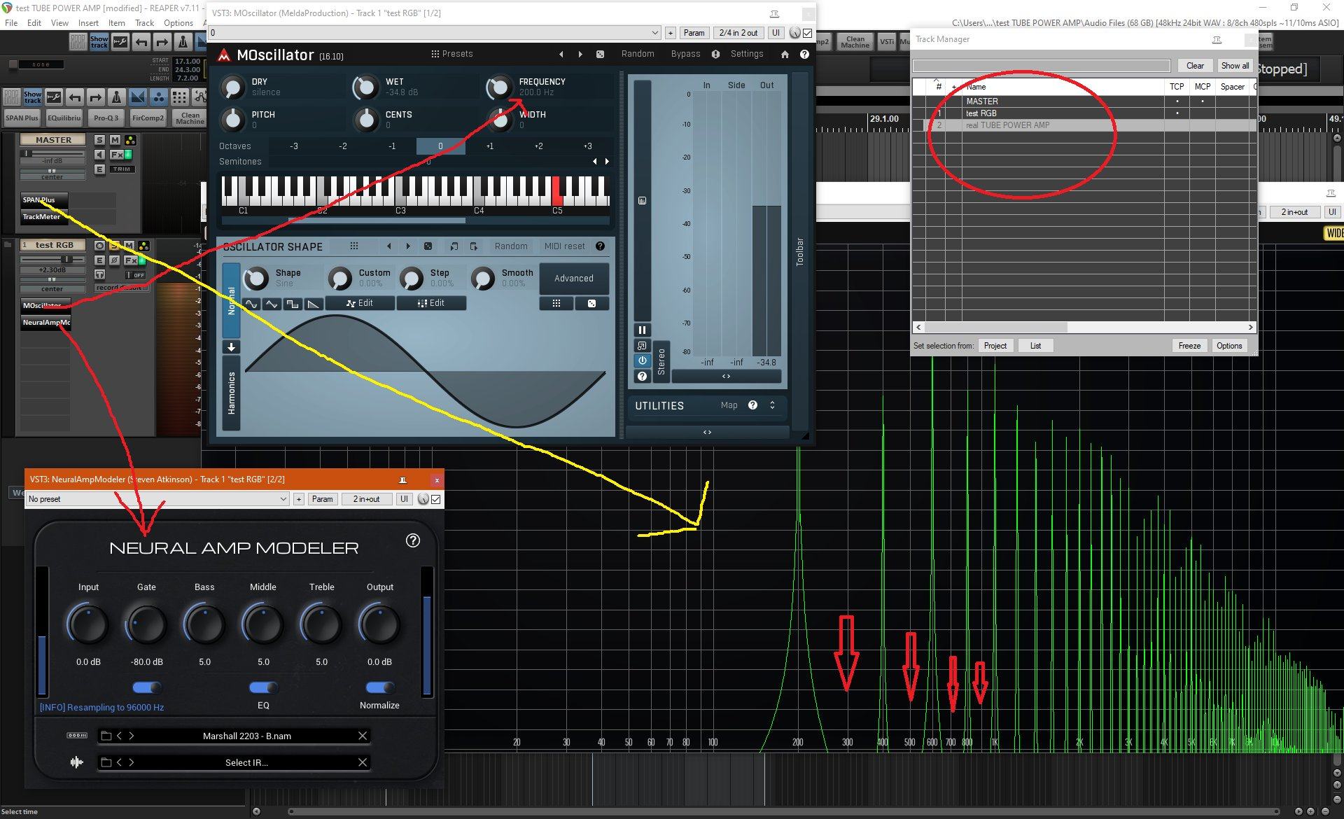 половины спектра нет, т.е. от фундамента 200 герц (я уже ранее писал почему использую именно эту частоту, она более адекватна с точки зрения гитар, а не хай фая где середина 1кГц)