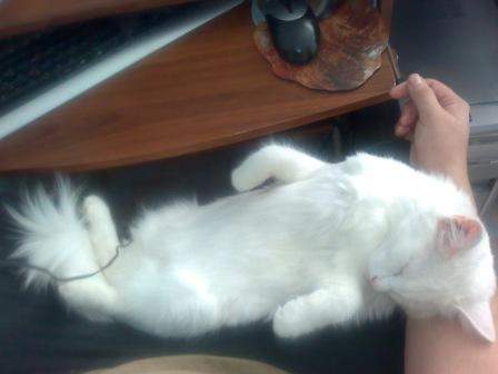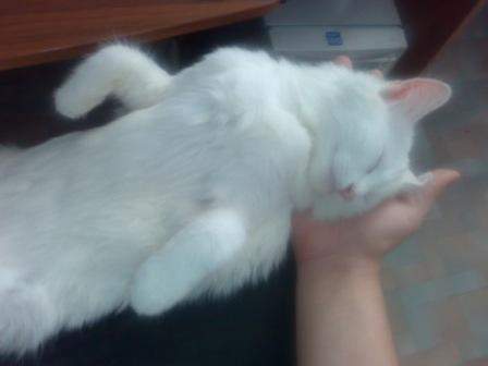 Супер кошка,настоящая Crazy 1 на миллион...спит как люди на спине почти всегда,ест бумагу (!),очень покладистая.Видео,как она ест бумагу выложу позже.