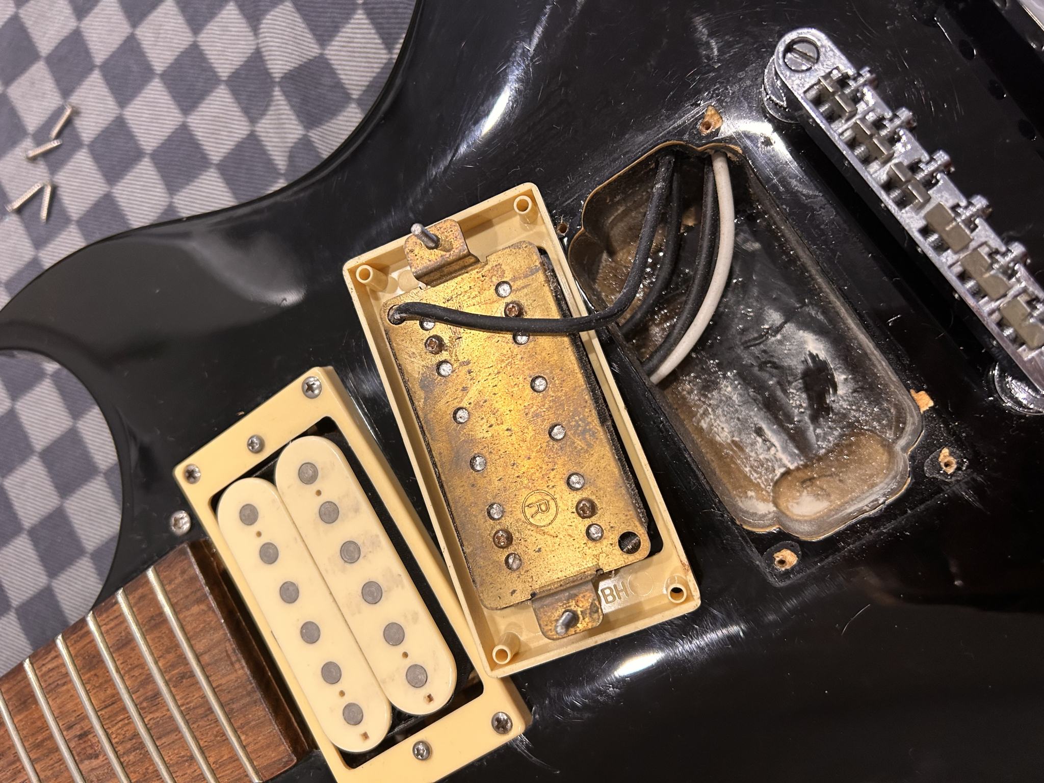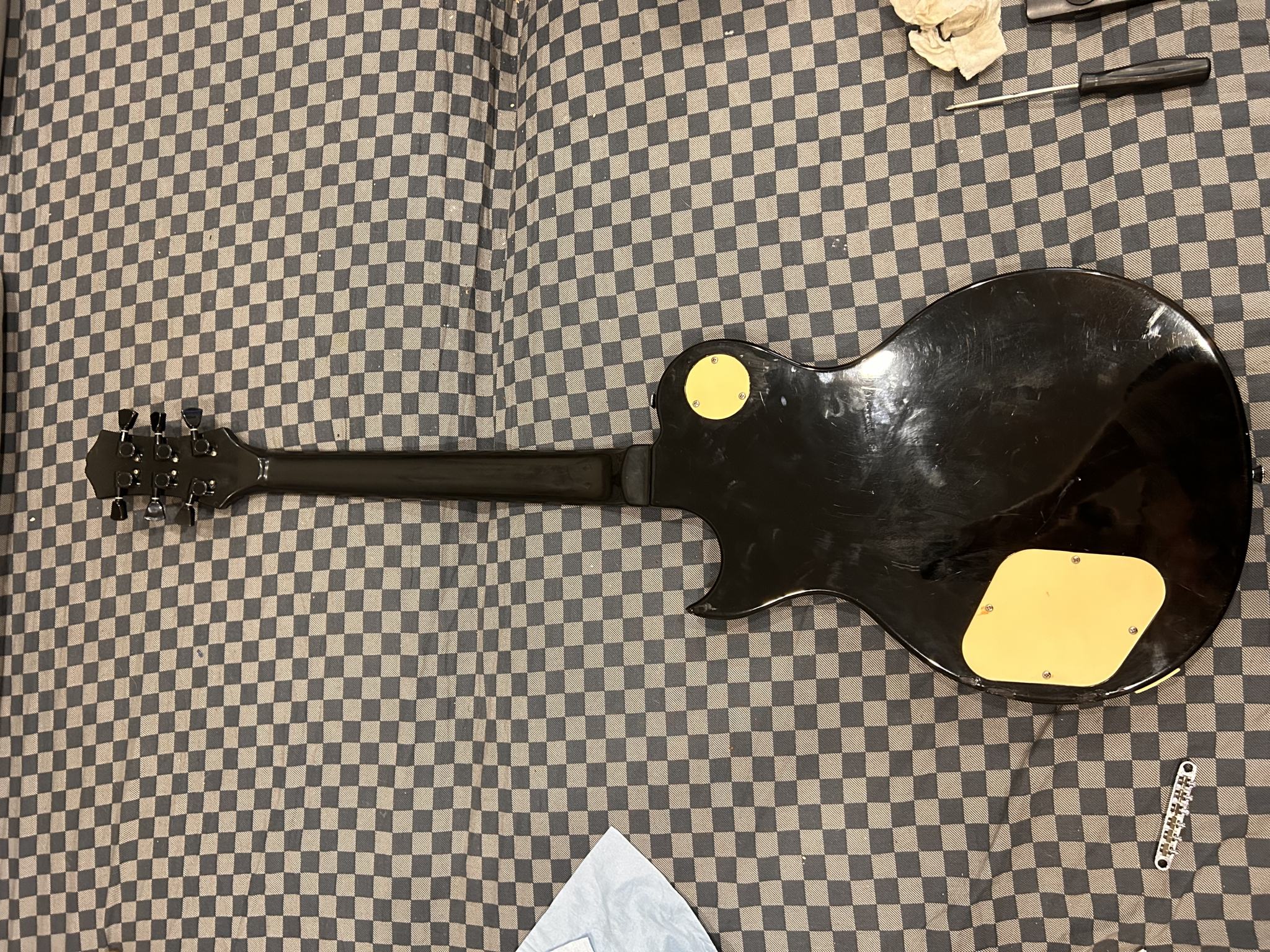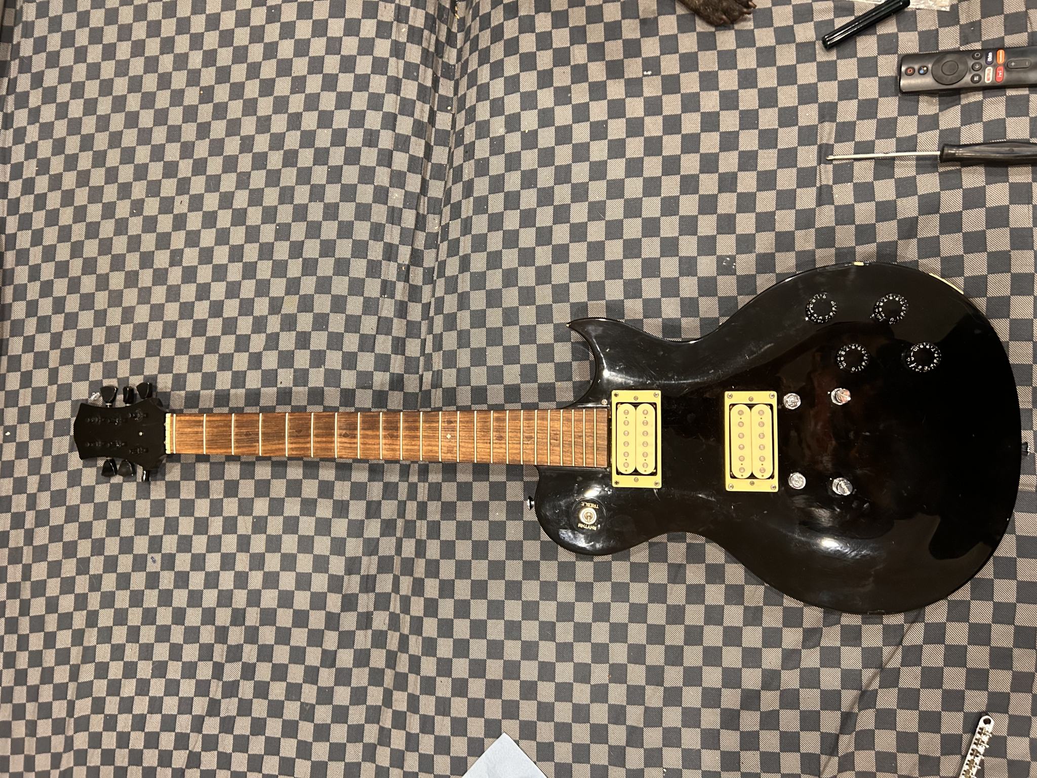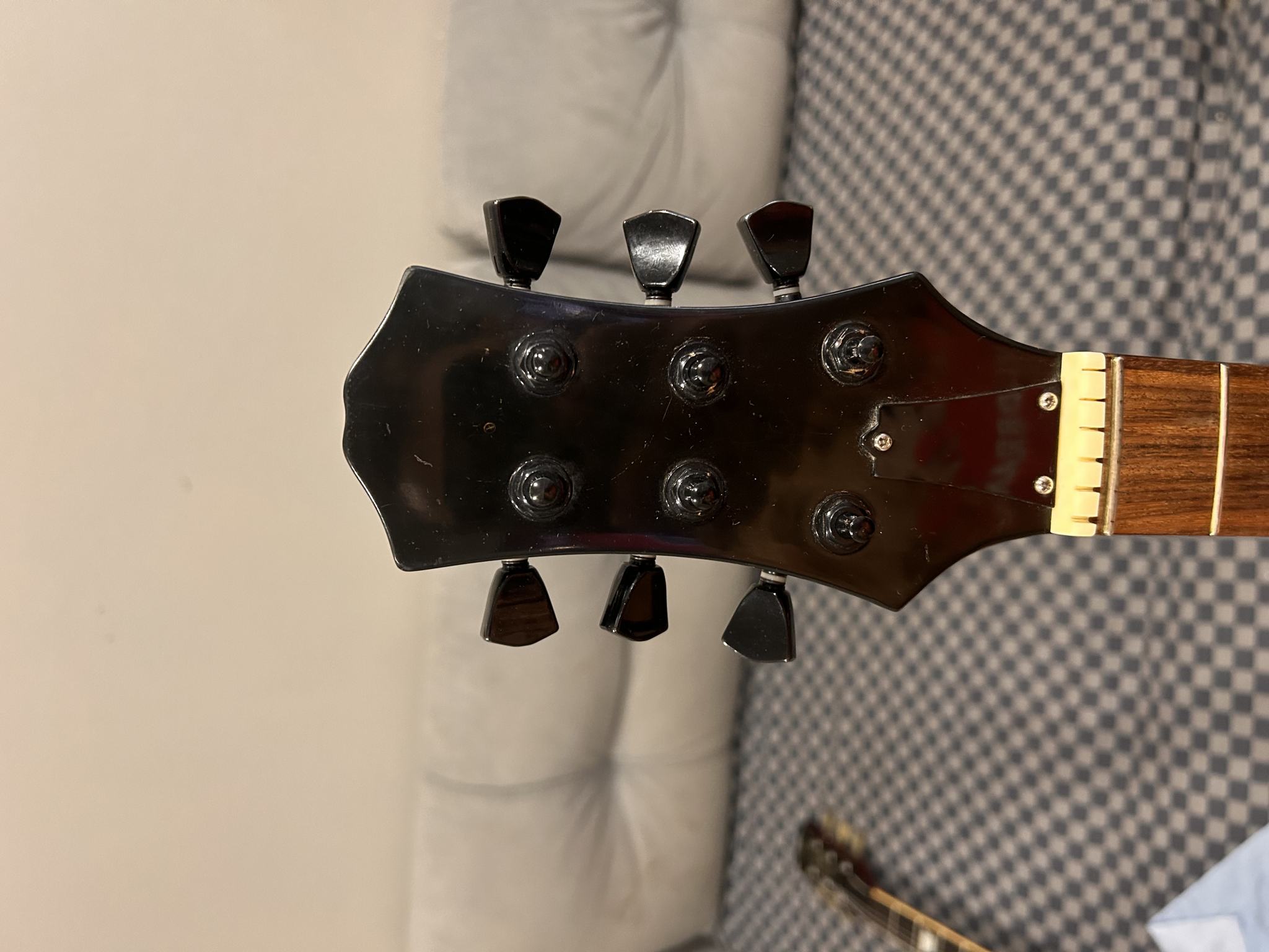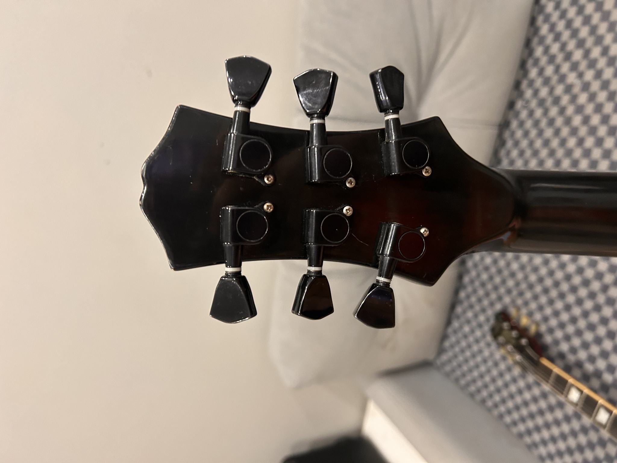 Но, моментик - это то, что трапеции на грифе инкрустированы в оный . На этом же экземпляры их нет, замена грифа исключена , ибо он вклеян. Загадка остается даже, с учетом смены колков