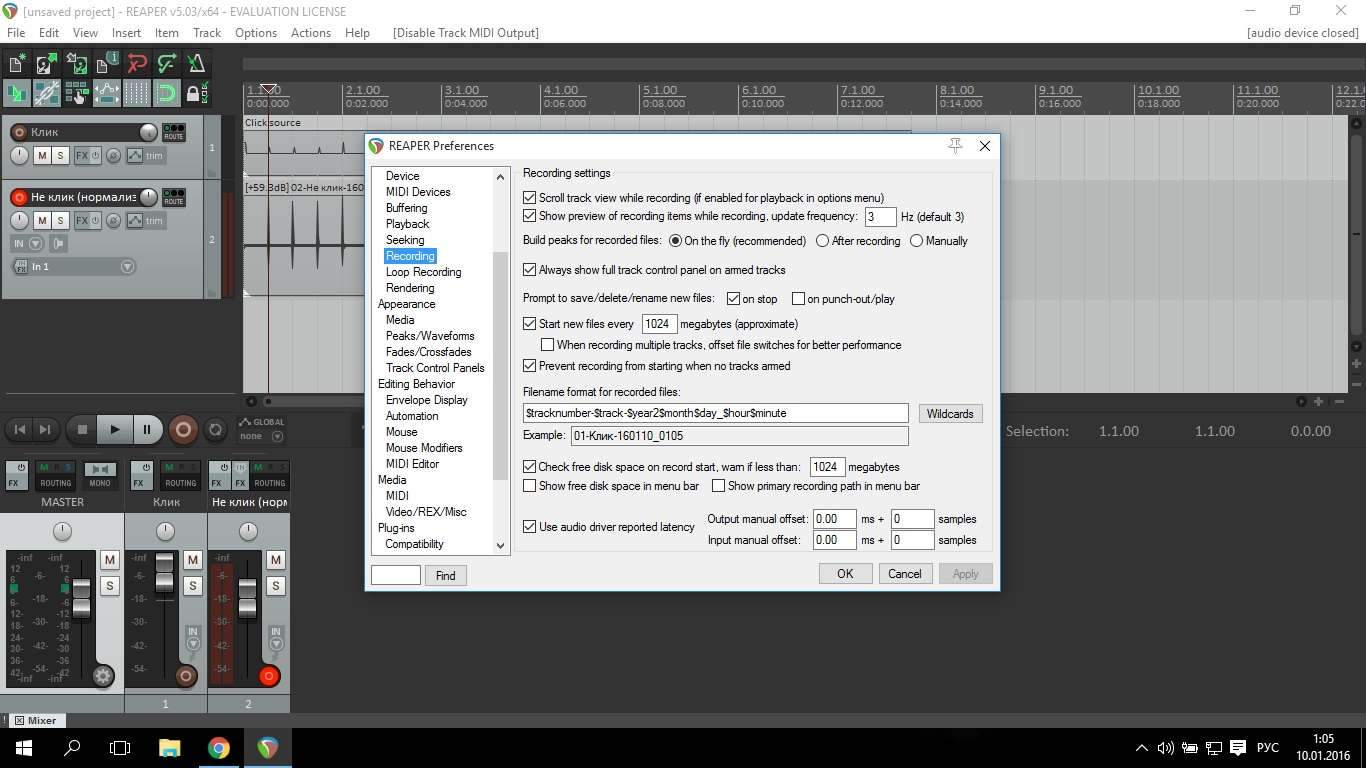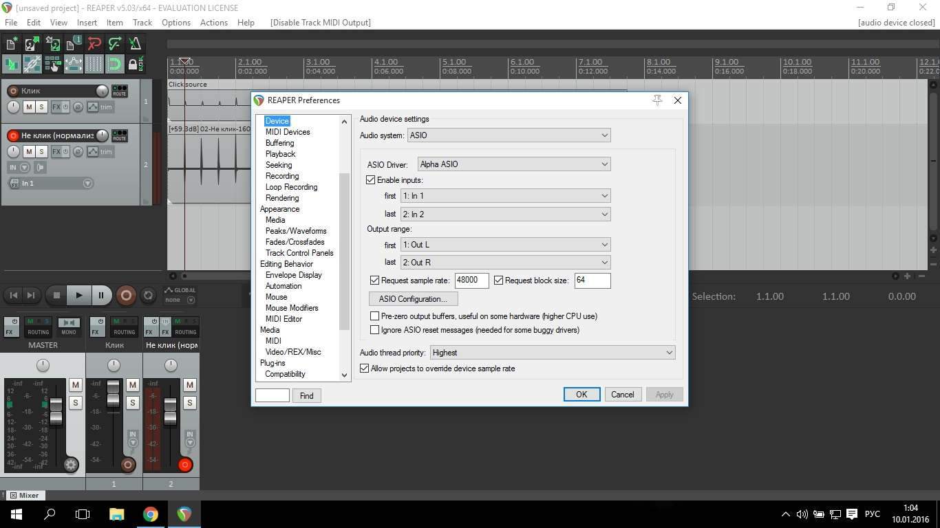 параллельно с этим идем в настройки Ctrl+P выбираем разные аудиоинтерфейсы, настройки входов - бесполезно!