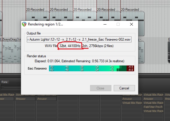 Здравствуйте, господа - товарищи. Столкнулся с такой проблемой. Мой товарищ пишет музыку для спектакля, присылает мне по почте проект (у нас обоих стоит Reaper и все плагины одинаковые),а я записываю партию бас гитары и отсылаю ему на миксинг. Когда темп не меняется, всё нормально. Но если в темпе есть изменения, он говорит что есть рассинхронизация. У меня всё четко, выставлено по стрейч маркерам, да и визуально расхождения нет. Настройки проекта одинаковые. Разное только железо. У него "Lynx ywo", у меня E-MU 0404. Но как это может сказываться на рендере? Если кто-то имел подобные проблемы, или знает направление поиска, подскажите, пожалуйста. Может ли это происходить из-за разного железа?