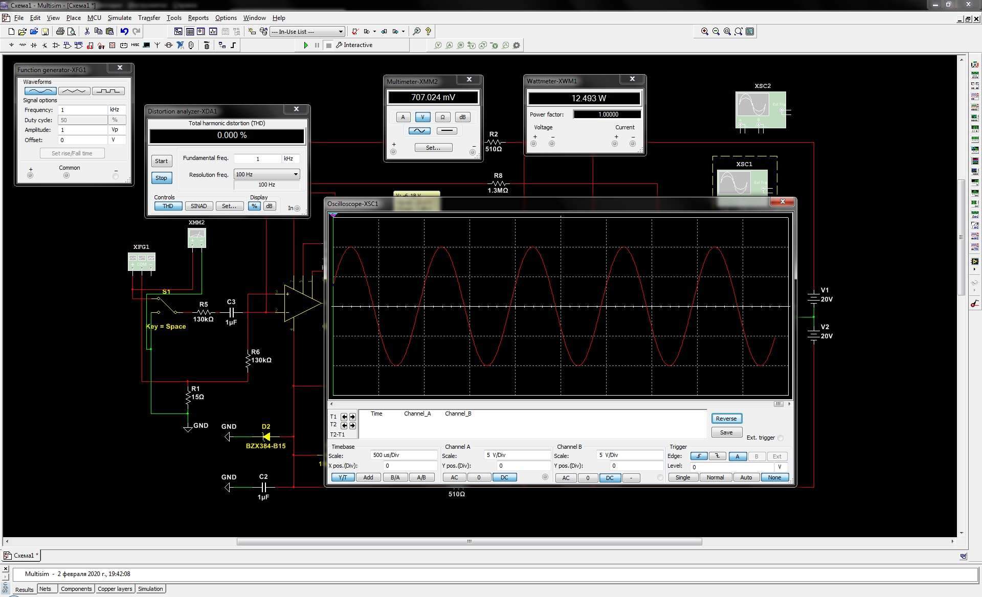 Multisim 14 Собирай себе виртуальную схему, питай её виртуальной энергией и тыркай измерялки в разные узлы (генераторы, осцилографы, THD и прочее).