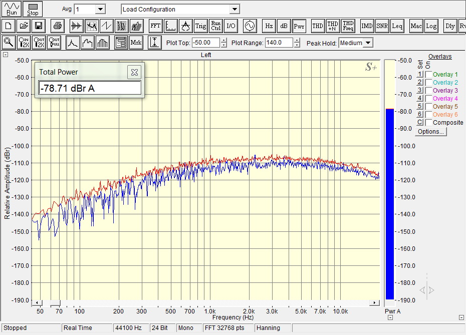 Немного смутила, одинаковая мощность шума на в 16 битах, при разных коэффициентах усиления. Но кривые шума разные. Скорее всего, это говорит об очень качественном предварительном усилители.