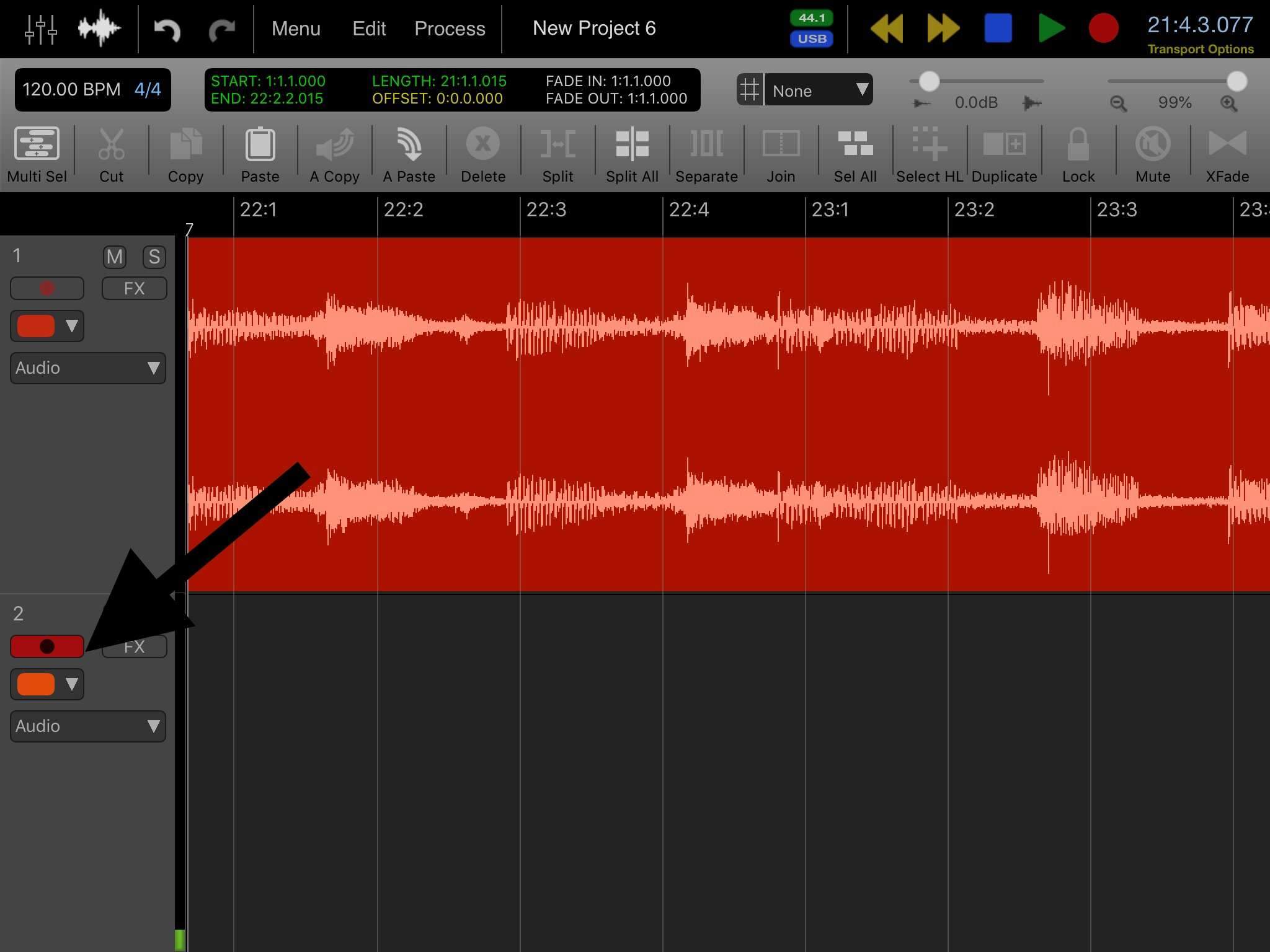 Кроме этого, файл можно загрузить через DropBox. Если у тебя еще нет аккаунта, сделай его, запомни логин и пароль и пропиши в окне импорта файла (свисающее меню MENU -> IMPORT AUDIO и вверху будет Dropbox). После этого можешь загружать в DropBox любой аудиофайл (включая mp3), после чего он появится в окне для импорта Auria.