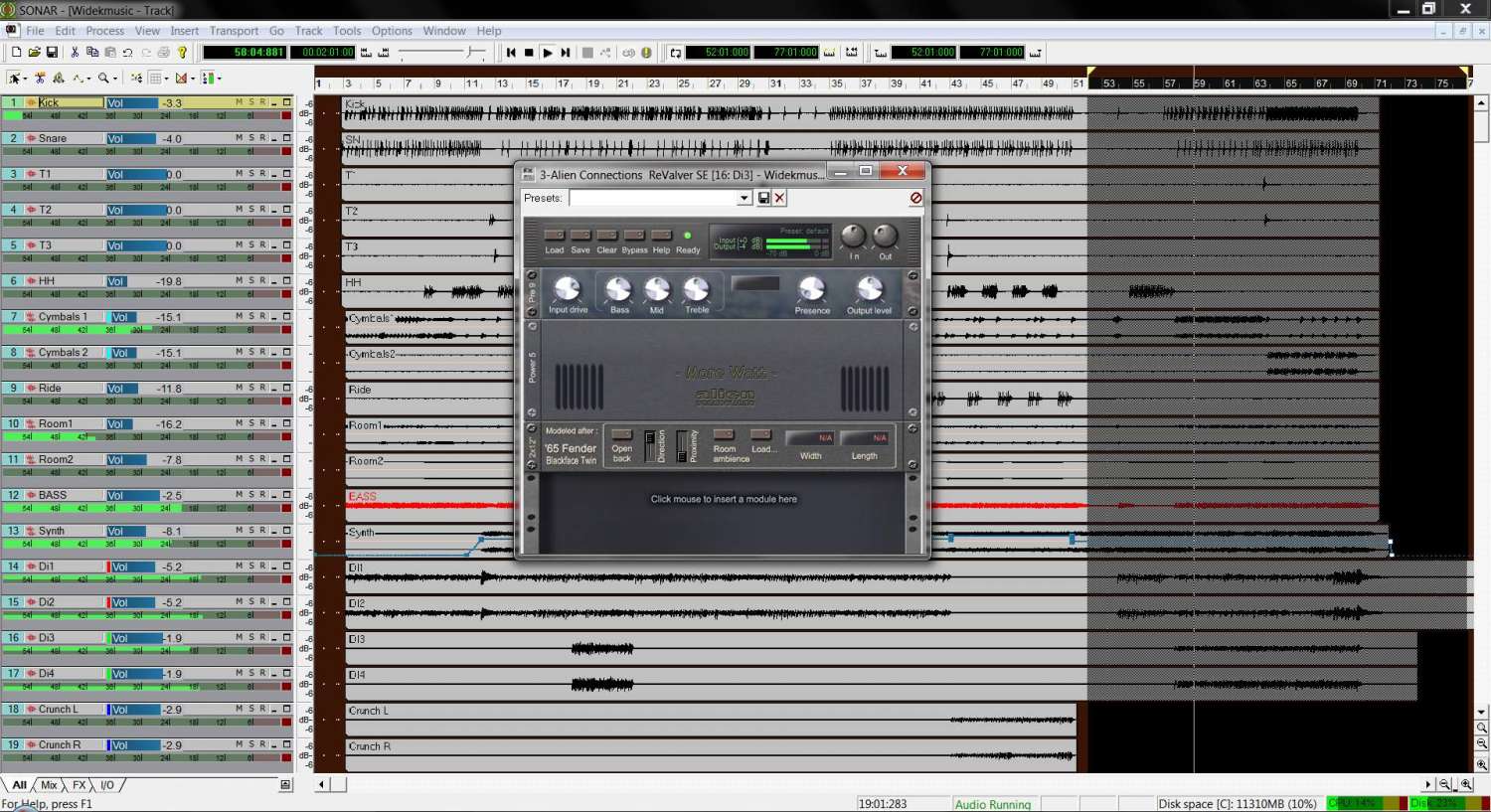 Звук гитары интересный, но чего-то у тебя там все бубнит, посмотри в районе 130 герц и рифф на 1:17 - ты там не совсем то играешь.