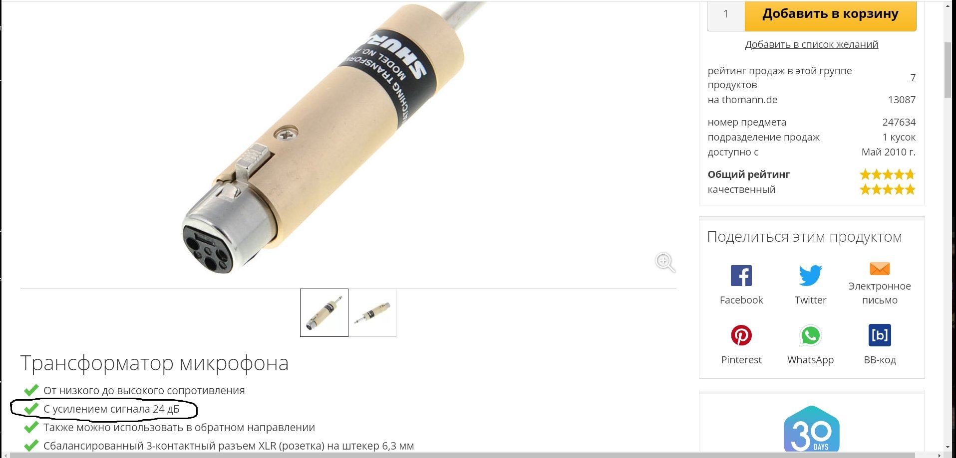 Хороший лайфхак мне подсказал наш форумный гармошечник Женя Варламов (Varlamov_Evgeniy) - динамический микрофон можно подключать в инструментальный вход через специальный адаптер, я себе купил Shure A85F
