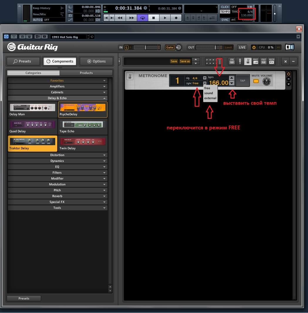 и все встанет на свои места, они и должны синхронизироваться между собой, иначе будет раздрай с делеями, питчами и прочими ревербераторами GR