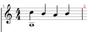 Большое спасибо всем за подсказки, но не получается. Ни один из предложенных вариантов не срабатывает. Всё равно выходит, что нижняя нота, либо целая, но одна на целый такт, либо 1/4. Может ещё есть какие-то варианты?