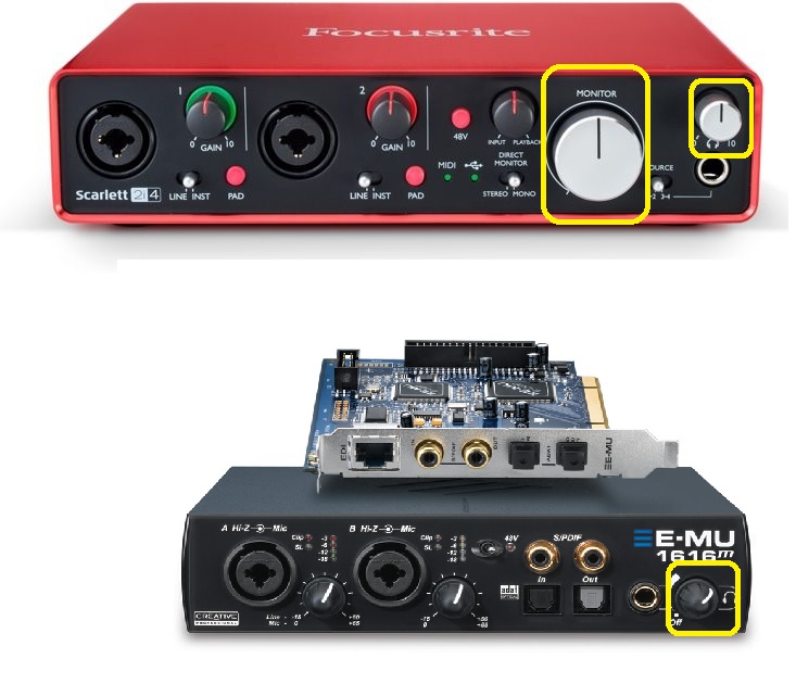 Мы видим ГИГАНТСКУЮ ручку громкости для мониторов и маленькую - для наушников. Нормальные разработчики предполагают, что профессиональные карты люди, вероятно, включают в студийные мониторы, где регуляторы громкости в 99% случаев находятся сзади. Разработчики же