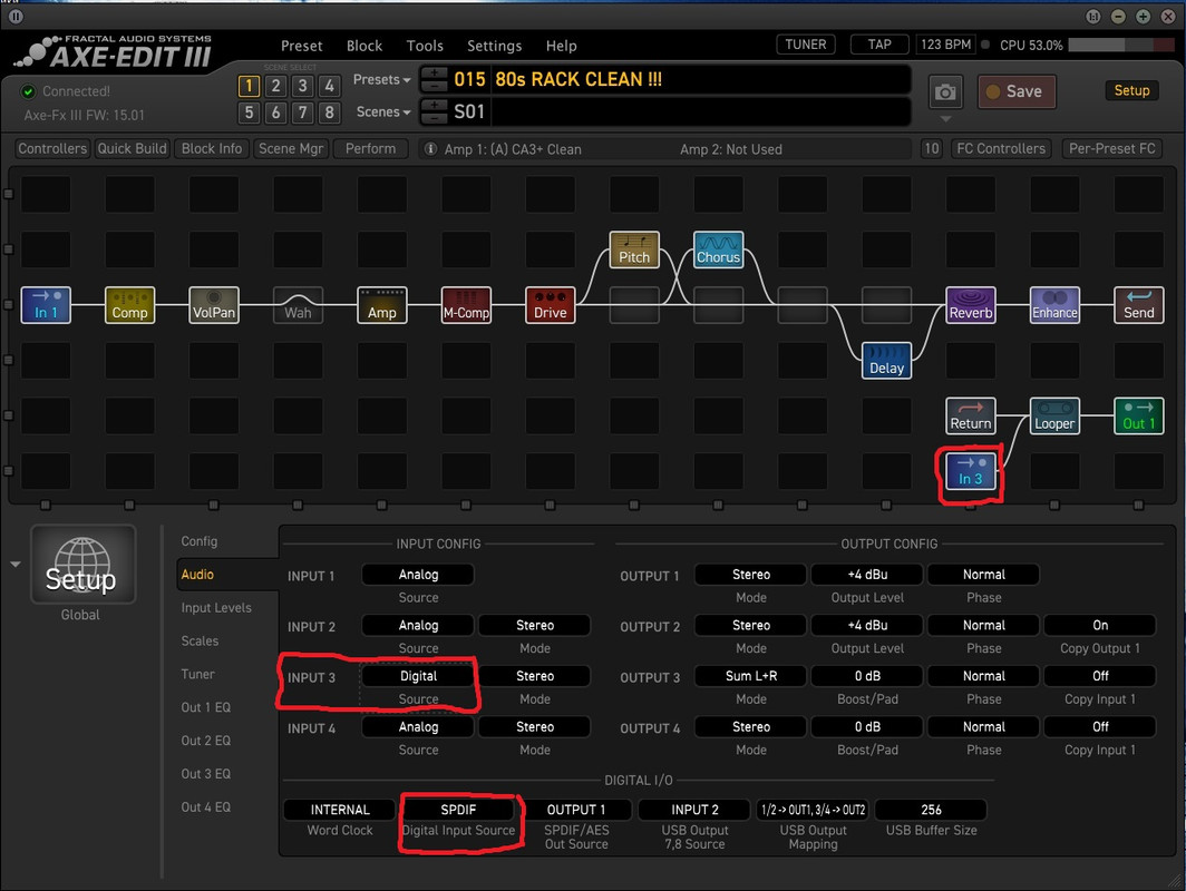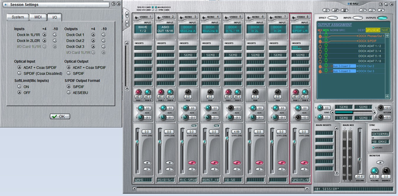 Добрый день. Не подскажите по соединении по цифре карты E-MU1616m и Axe3. Хочу настроить отправку звука по цифре из дока по коаксилу (звук с фубара, или медиаплеер классик, или из гугл хром (Windows 7 64х)) на Axe FX3. Подключаю 2 кабелями коаксильными всё (из аутпута E-MU в инпут Axe и наоборот), выставляю в аксе приём по цифре на инпут3 (нужный), а звука нет.( По аналогу всё приходит на этот инпут 3 (подключаю балансными кабелями), а когда выставляю в настройках акса цифровой вход, звука нет по коаксилу. При том, с акса по цифре, я получаю звук на E-MU1616m по коаксилу, всё нормально приходит, а обратно нет. В настройках выставил так (принтскрин1), в аутпутах соединил микс с спдиф (принтскрин1). На аксе такие настройки (принтскрин2). Ничего не получается