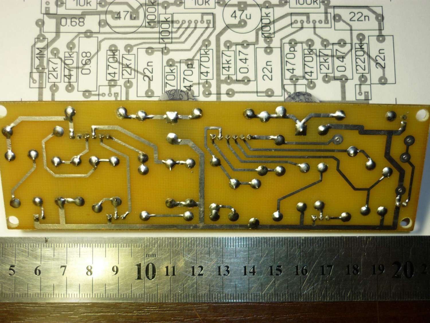 Ни фига подобного. У меня скример получился красивый внутри. Плата по всем канонам задротства выполнена. И, кстати, ЛУТ очень неплохо сработал.Кандеры все металопленка, хоть и с радика, микруха такая же, как в оригинале, транзисторы тоже, только диоды заменил на 1N4148. Звучит бесподобно.
