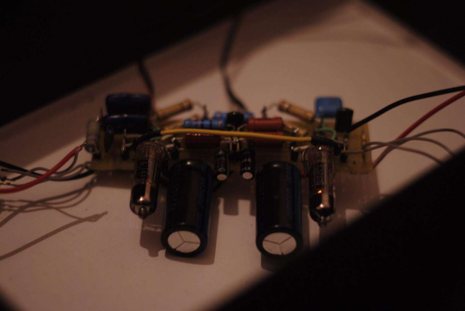 динамик смотри как.. трансформатор обмотки замерь есть ли везде нужные омы, по лампочкам прйдись по всем контактам, везде ли правильные напруги, в конце концов можно поставить мультик на переменку и потыкаться по порядку во все точки где должен быть сигнал, в это время держа входной джек рукой, чтоб фонило) 50 гц ну и сколько вольт переменки будет показывать, если где-то слишком мало по пути следования сигнала, поймаешь....