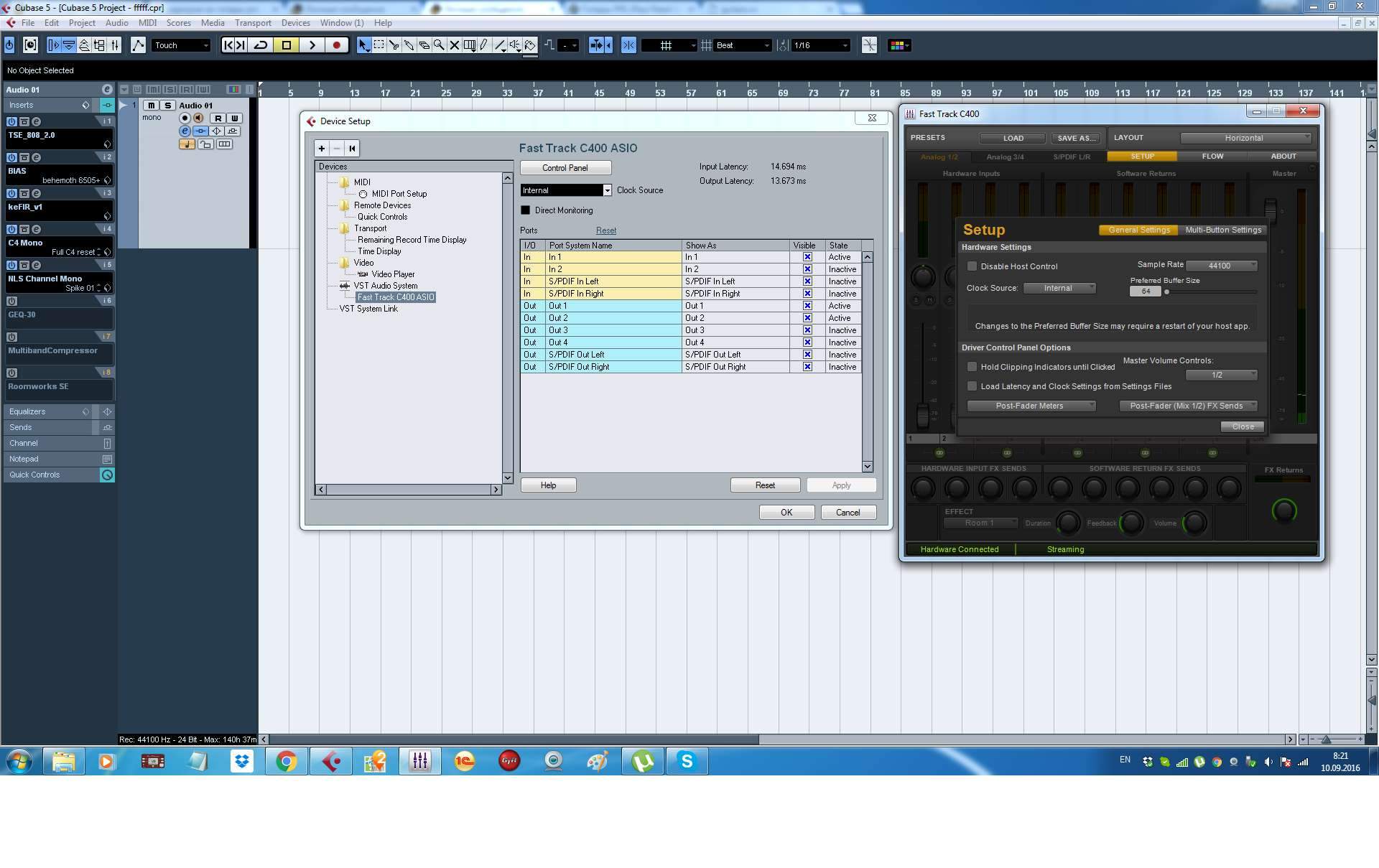 Ещё одним камнем преткновения могут стать импульсники, некоторые не умеют работать с нулевой задержкой, некоторым это надо не забыть включить. Не помню, например, у Voxengo Pristine Space нулевая задержка (в его настройках) включена по умолчанию или нет, если нет, то будет использовать размер буфера в его настройках, если он больше буфера карты, то может быть задержка, т.к. хосту придётся компенсировать. Причём режим Zero Latency у него нормально работает только когда размер буфера карты это степень двойки (128 как раз 2 в 7ой), если буфер карты не степень двойки, то лучше выставлять размер буфера меньше чем у карты. Из-за подобного гемора я перестал сейчас его использовать, перейдя на свой PFF Convolver (но его интерфейс не каждый вытерпит). Остальным можно использовать SIR2 (не забывая включить Zero Latency у него, но там без подводных камней)