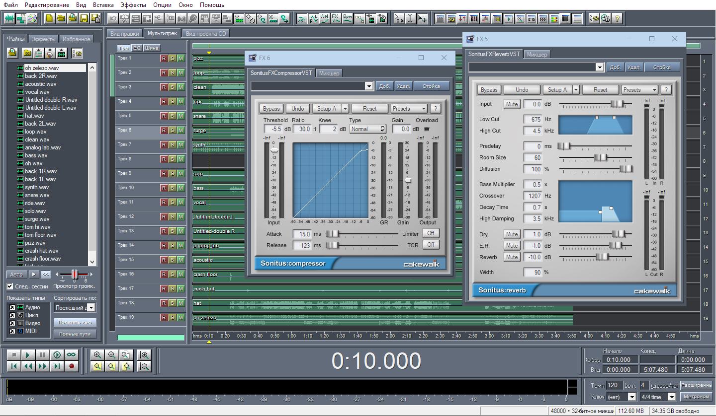сонитус компрессор и сонитус ревер, а эквалайзер его же аудишенский графический фазолинейный