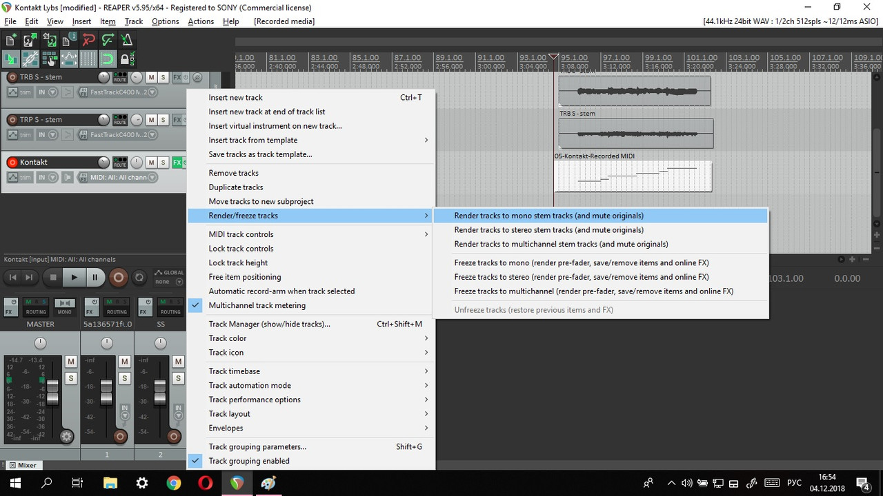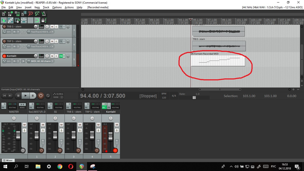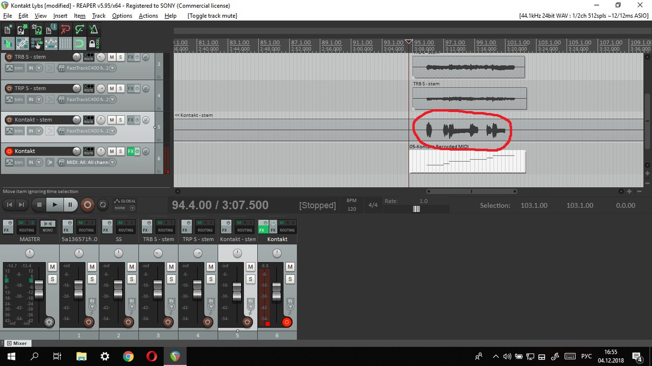 Записал партию через Kontakt 5 Factory Library (конкретно Horns) в Reaper. Все вроде хорошо, все звучит, не запинается... только вот при переводе миди дорожки в аудио формат, у некоторых инструментов (а иногда и у всех) обрубается сустейн. Причем ранее с этим же вст инструментом несколько дорожек отрендерились нормально, а потом будту что-то навернулось. Думал, что в проекте может чего клацнул случайно, попробовал в новоп проекте сделать - результат тот же. С другой библиотекой пробовал, та же песня, причем "затыки" примерно в одинаковых местах. Прилагаю скрины для наглядности.