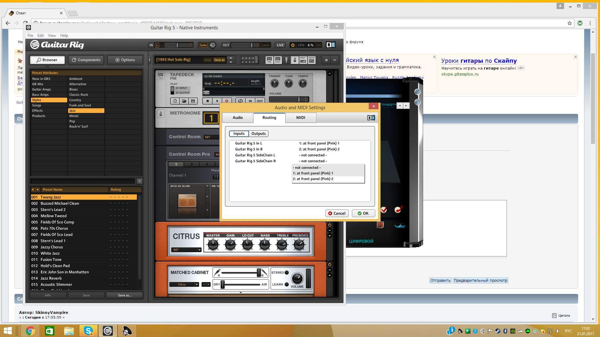 White Rabbit, амм ну тут тоже палка о двух концах. во-первых нафига для записи больше чем 5 метров кабеля?)) и 2...2.5 хватит, там хороший провод купить стоит, хорошие джеки... ди-бокс это дополнительное звено в цепи, можно потерять с сигнал/шум, он же пойдет потом еще в микрофонный предусилитель который у этих карточек все равно не топ-класса, по этому все-таки не считаю что это лучше, сигнал/шум на DI это оч важный параметр.. опять же так народ накупит активных АРТовских дибоксов, а они дешманские, копеечные, шумят потом как пылесос, и.. по этому и не советую в общем.. можно намного больше проблем получить, чем завал верхов на 3дб например)) у меня был тот старый фаст трек с 330 или 470к сколько там было.. да, немного глуховатый звук, но в общем-то записывали.. опять же поднять верхних частот эквалайзером никто не мешает, конечно это не совсем то, но в целом мне кажется так будет качественнее запись.