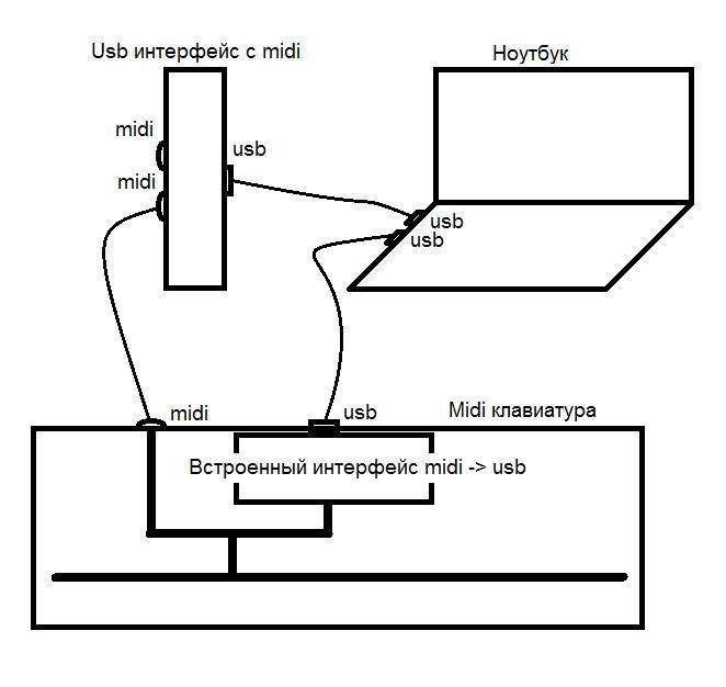 задержки по входу с миди-клавы можно сказать что вообще не будет при любом способе подключения, задержка будет определяться только настройкой асио-драйвера звуковой карты (по выходу), и получится, что при игре на клаве задержка всегда будет в 2 раза меньше, чем при игре с эффектами на гитаре (для которой сложатся задержки по входу и выходу)