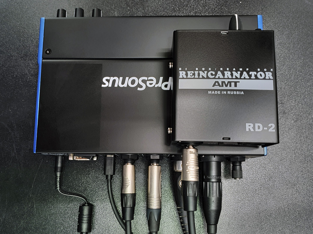 Airstamp: в отличии от AXE полностью отсутствует проблема с понижайкой). Реампер AMT посылает из аудиоинтерфейса в комбик полностью живой динамичный звук, абсолютно того же уровня и жира, что и при игре напрямую из гитары в комбик. Итого 24к за интерфейс + 6к за реинкарнатор =