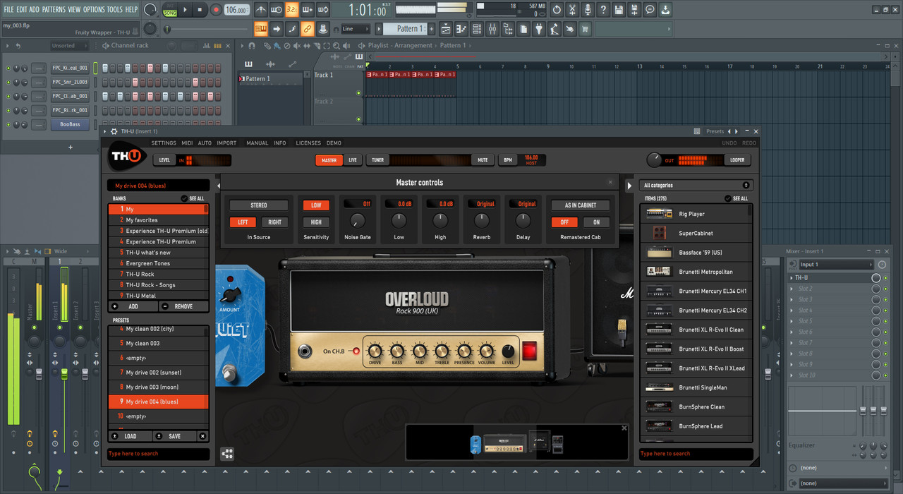 На значениях со скринов ниже звук не щелкает на посредственном компе при записи в FL Studio на приведенных настройках данного секвенсора. На 192кГц 64 семпла щелчок появляется редко, реже чем раз в 10-15 минут, что практически всегда дает возможность произвести запись без лагов с первой попытки. Использую VST Overloud TH-U, прописал ударные стандартными средствами FL. Если честно, я подозревал более худшего сценария.