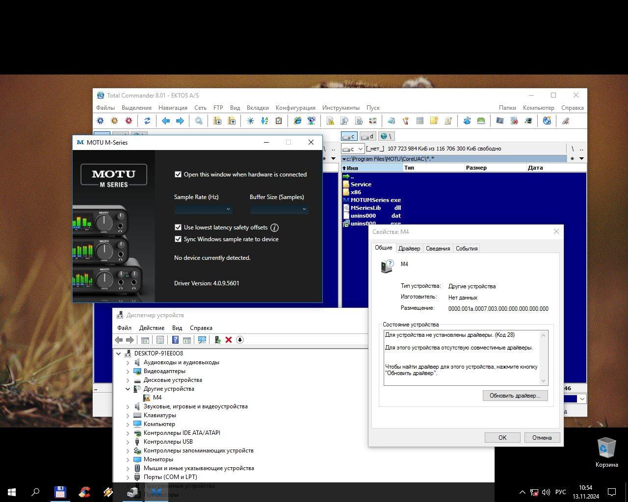 А ещё я вспомнил, что когда я использовал Беринжер, у меня так же были проблемы с их официальным драйвером. Я не помню какую именно проблему я пытался решить, но помню, что часто безрезультатно переустанавливал драйвер, и по итогу пришлось пользоваться Asio4all, который и так у меня стоял до покупки карты. При подключении она сама определялась и работала без сторонних (официальных) драйверов, о которых я узнал лишь спустя некоторое время.