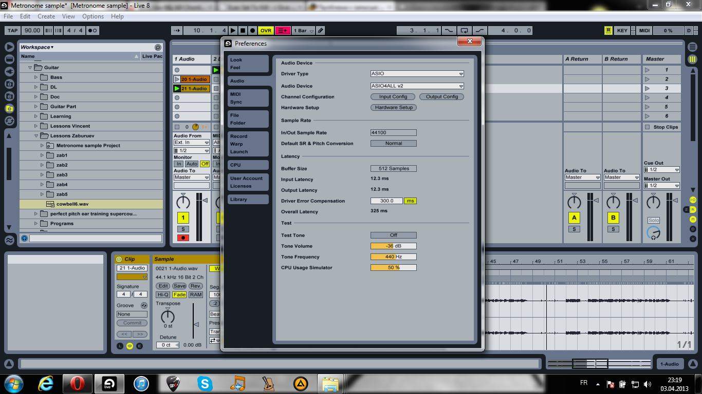 Записываю гитару в Ableton Live и нужно иметь на выходе звук гитары + метроном. Использую Drum Rack для создания лупа с метрономом (сэмпл неродной аблетоновский, родные не устраивают).