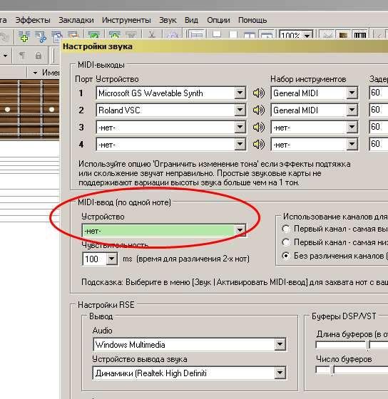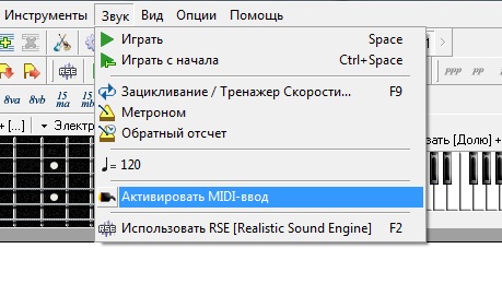 И не забываем про вкладку Звук - Активировать миди-ввод
