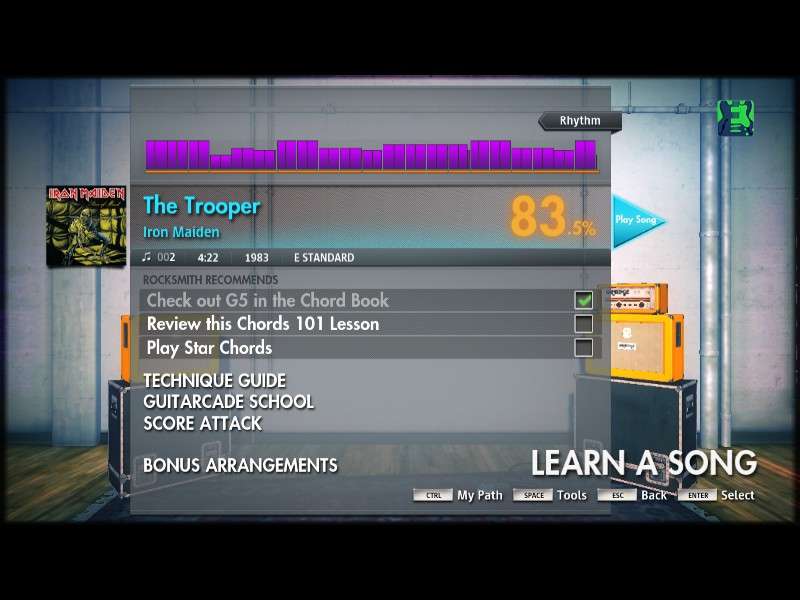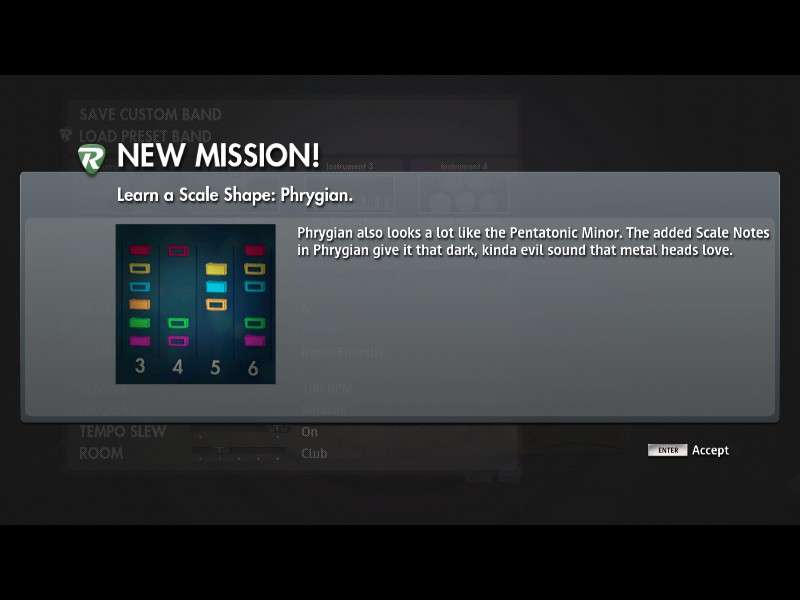 Много миссий на настройку звучания. Где-то читал, что смоделировано более 300 педалей, усилителей, кабинетов и другого. Сначала показывают, как можно использовать любой звук из существующих композиций. Вручную переключаться между несколькими заготовленными звуками. Изменить можно всё что угодно - педаль в преампе, изменить loop, хорус, делей, дисторшн, эхо, еквалайзеры, фильтры, фленжер, фузз, овердрайв, фазер, питч, реверберация, тремоло, вибрато, wah эффект, изменения в рековой стойке и даже изменение положения микрофона при снятии звука с кабинета. И на каждой педальке можно крутить все существующие ручки!